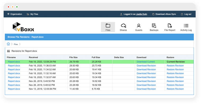 vBoxxCloud keeps every file version so that you can recover them whenever needed.