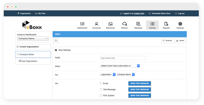 Set up email notifications that are sent when an important change happens in vBoxxCloud.
