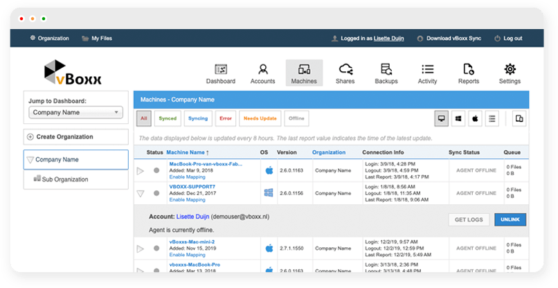 Know which devices are subscribed to the cloud and which users can access vBoxxCloud.