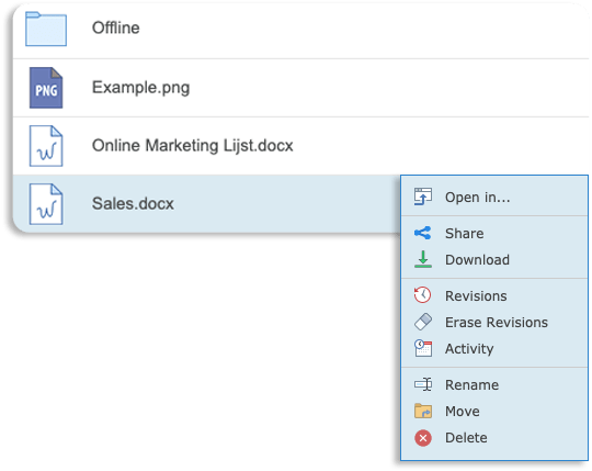 GDPR-ready, safe and fast. Simple to use, 2-factor authentication for even more security and you can disconnect a device. You can also decide which folders are visible on which device. Full support in Dutch. I'm very satisfied.